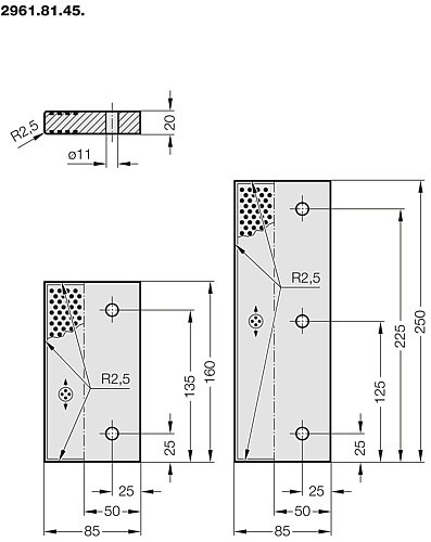 | 2961.81.45.085.20.250 | 85 mm | 20 mm | 250 mm |